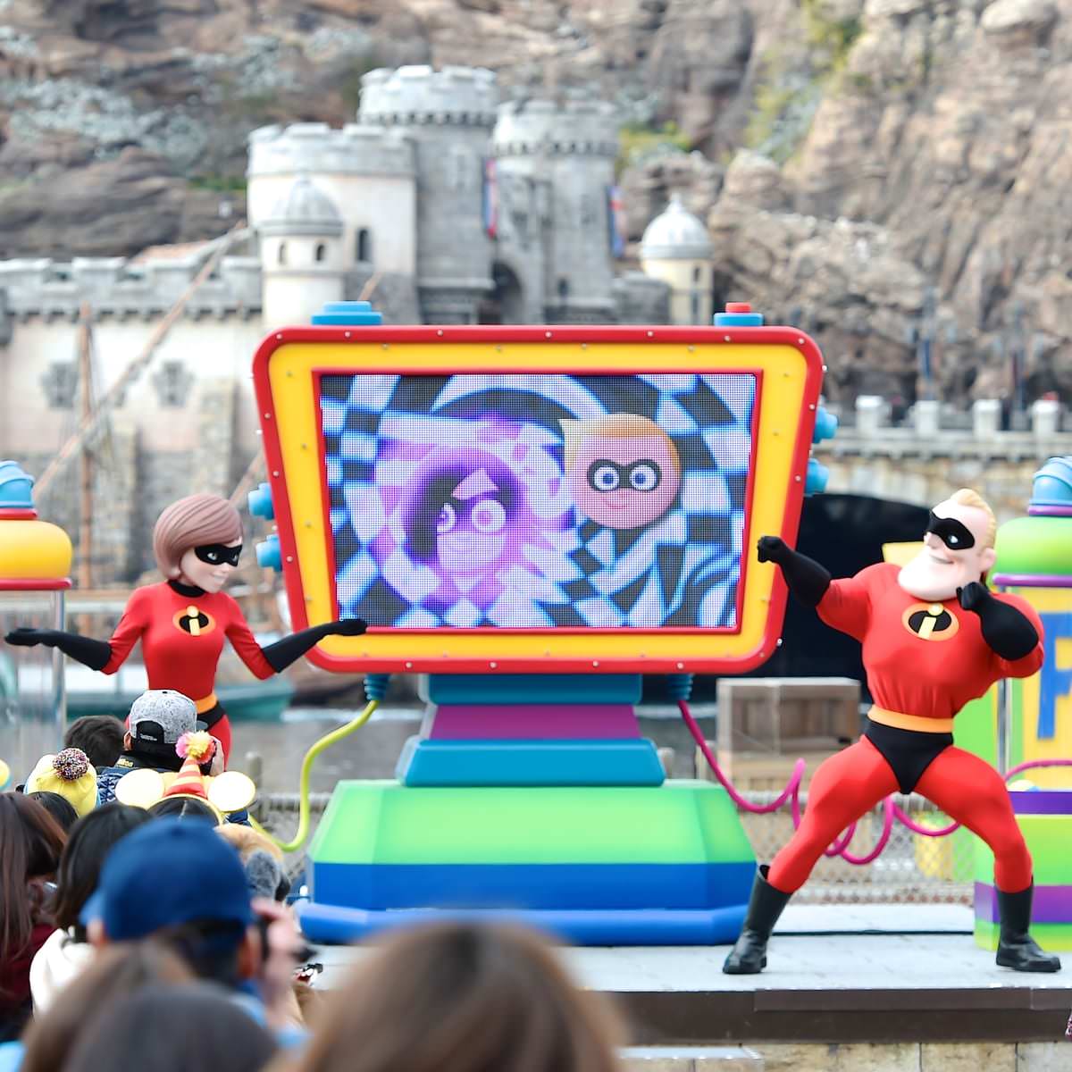 Mr.インクレディブルやインクレディブル夫人とともに、ステージ中央の画面にはヴァイオレットとダッシュが、