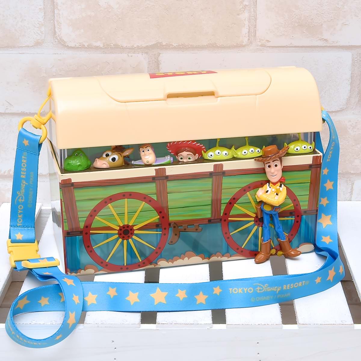 主人公の「ウッディ」や「バズ・ライトイヤー」たちの持ち主である「アンディ」の使っているおもちゃ箱を再現した幌馬車風デザインのポップコーンバケットです。