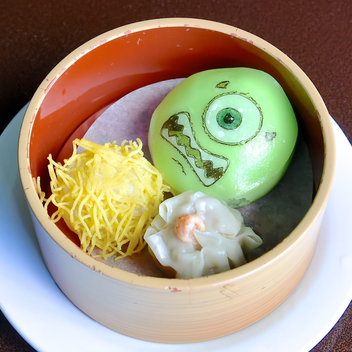 『モンスターズ・インク』シリーズの主人公で人気キャラクターの「マイク・ワゾウスキ」がモチーフの点心がかわいい「点心三種盛り」