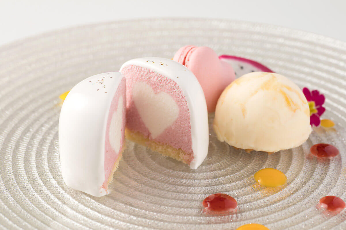 ババロアの断面をカットして「ハート」が現れたら‟HAPPY!” な、ユニークなデザートになっています。