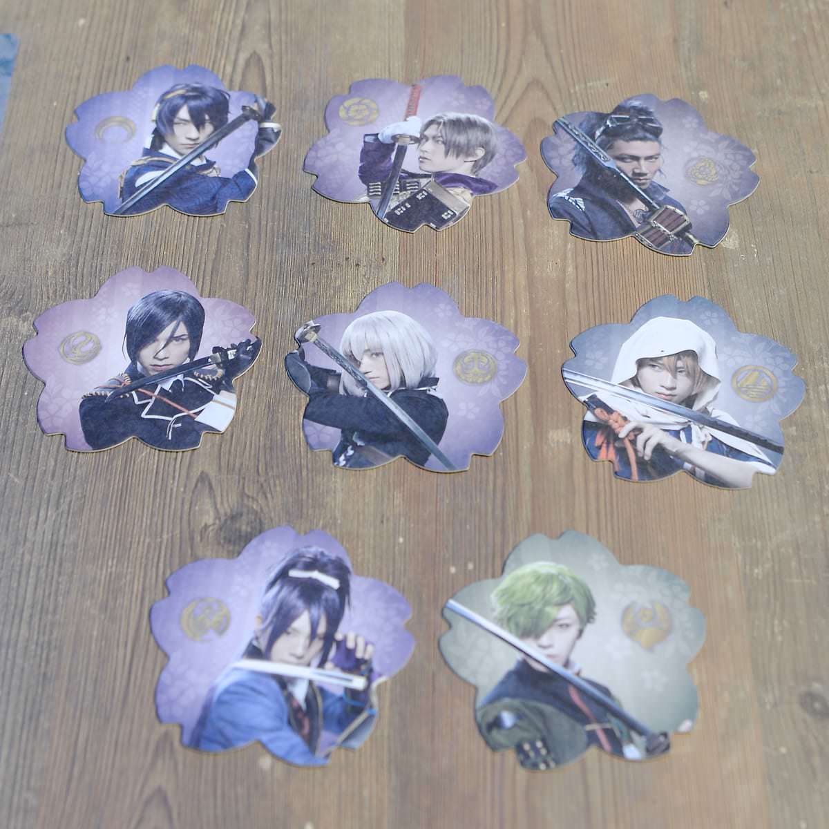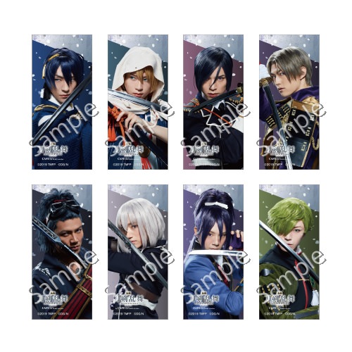 三日月宗近、山姥切国広など全8種のデザインが揃う長方形缶バッジ。