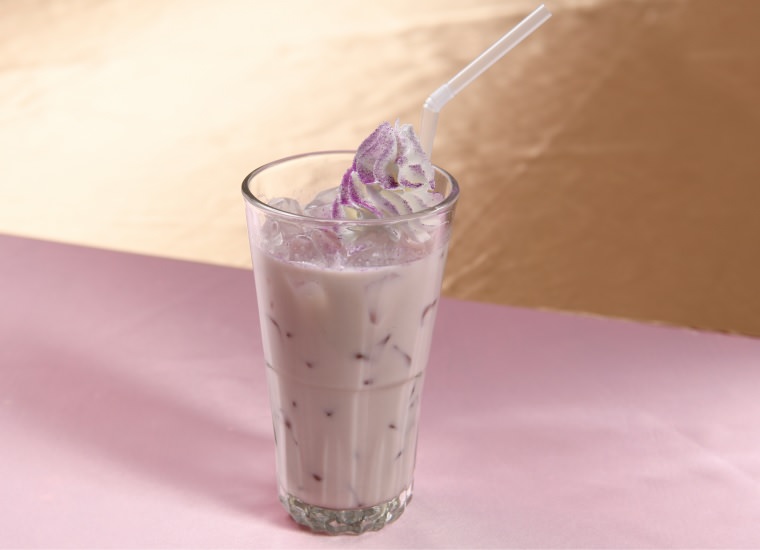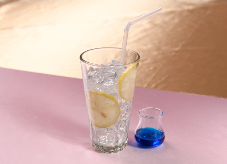 シロップを注ぐと美しいブルーに変わり、見た目も楽しめる一杯です。
