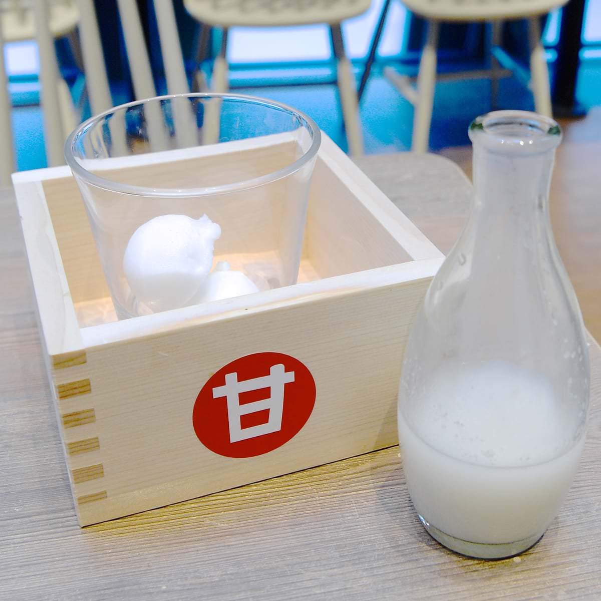 グラスに盛られたアイスクリームに甘酒を自分でかけて仕上げていきます。
