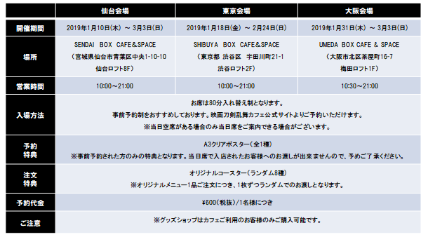 2019年1月より主要3都市にて実施される『映画刀剣乱舞』CAFE produced by THE GUEST cafe&dinerの紹介でした!