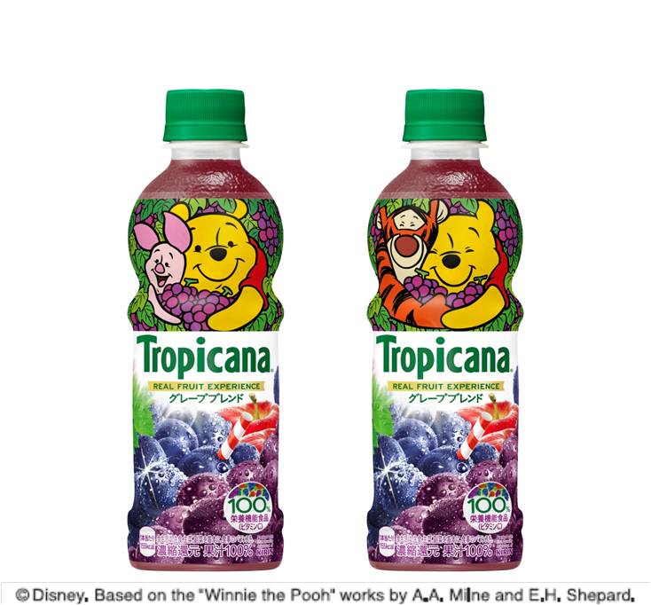 今回登場する『トロピカーナ100% グレープブレンド』では、ディズニー映画『プーと大人になった僕 』が9月14日(金)に実写版の映画として公開されることで話題の「くまのプーさん」がボトルラベルに初登場!