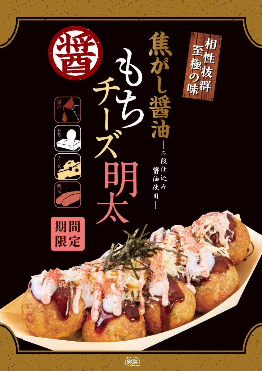 様々なトッピングのたこ焼きで人気の「築地銀だこ」から、二段仕込み醤油を使用した「焦がし醤油だれ」が香ばしい「焦がし醤油 もちチーズ明太」が登場!