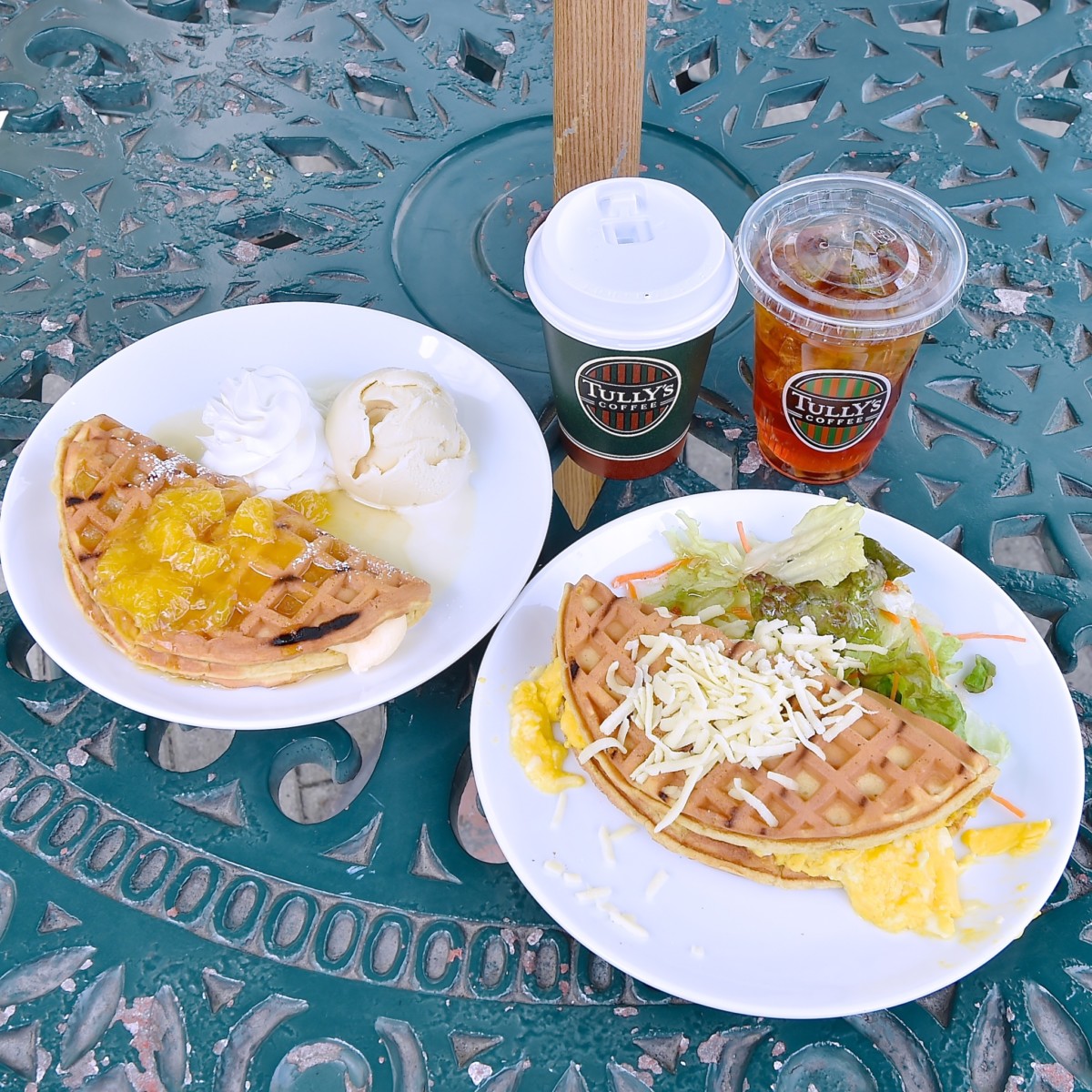 今回は、そんなタリーズコーヒーで提供中の「アメリカンワッフルプレート オレンジハニー」と「アメリカンワッフルプレート チーズエッグ」を紹介します☆