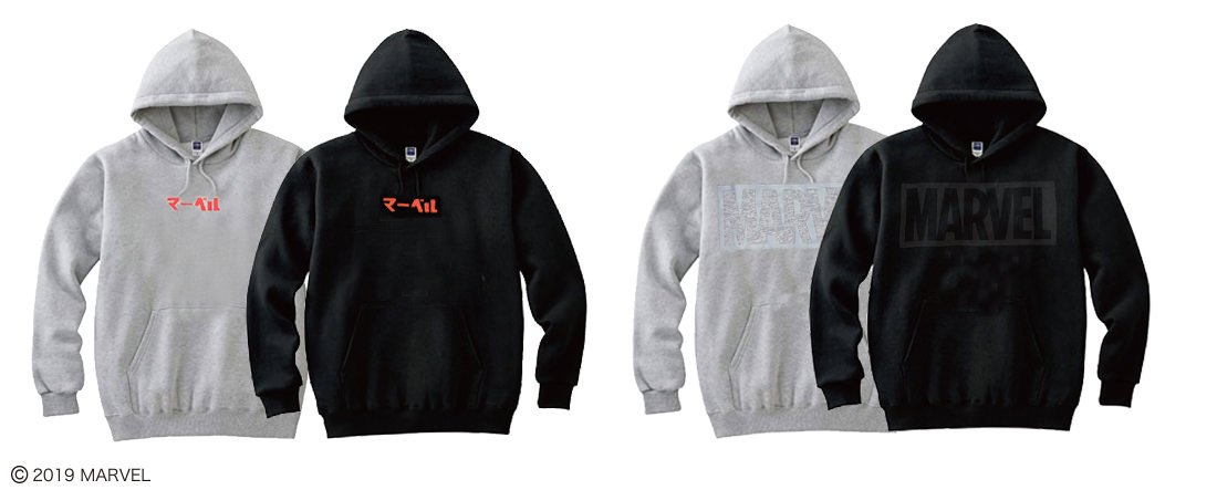 フロント胸部にマーベルのロゴがプリントされた「パーカー」2柄。