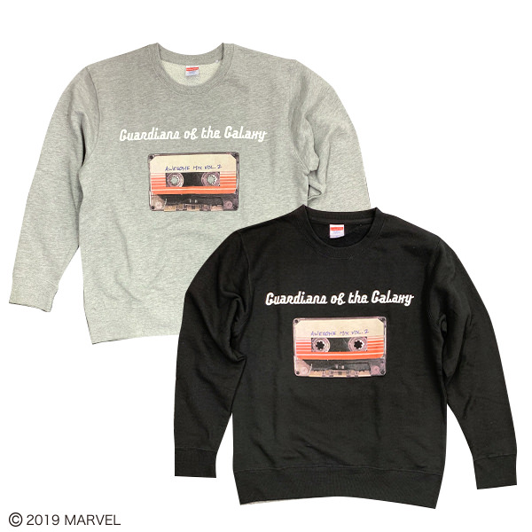 マーベルロゴがデザインされたパーカーと『ガーディアンズ・オブ・ギャラクシー』の中で象徴的なアイテムとしておなじみのカセットテープをデザインしたスウェットが販売されます☆