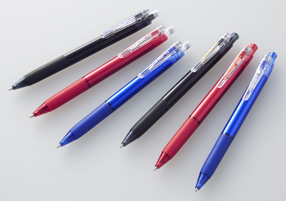 繰り返し書き直せる「ユニボール R:E」に可動式のオープンクリップが初めて採用され、より便利になって登場!