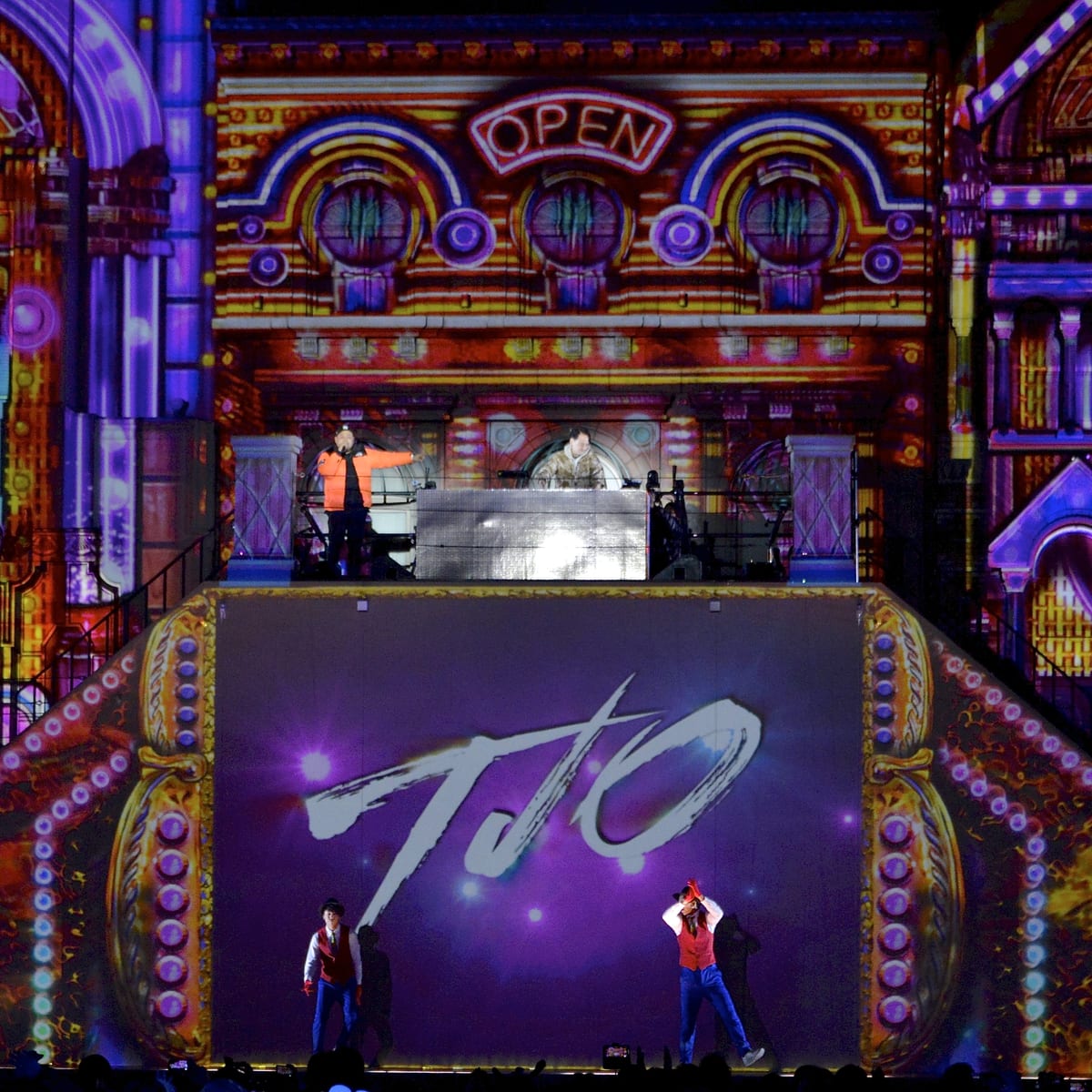 この日のためだけに作られたオリジナル楽曲が、年明けの瞬間に向けての期待感を高めてくれる中、過去最多の約3,700発の色鮮やかなパイロ(直立型花火)が夜空一面に打ちあがり、新たな年の幕開けを祝福!