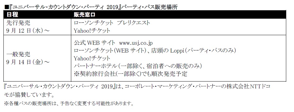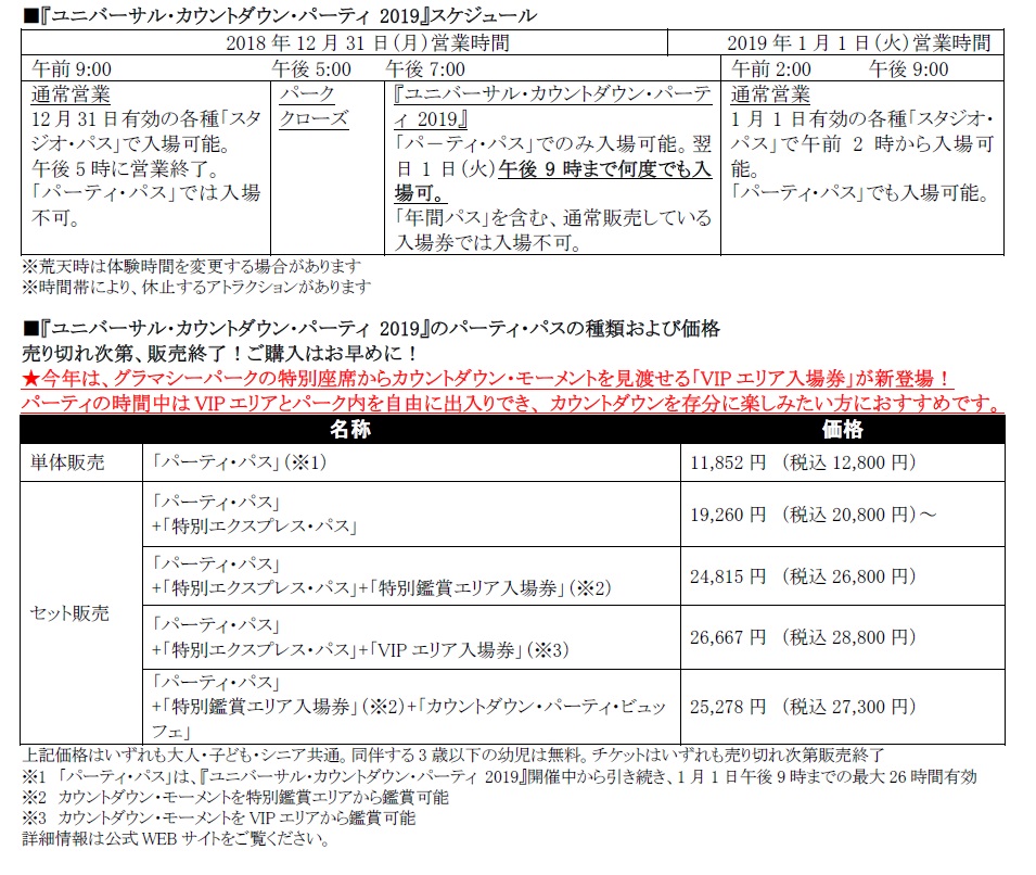 『ユニバーサル・カウントダウン・パーティ2019』追加販売
