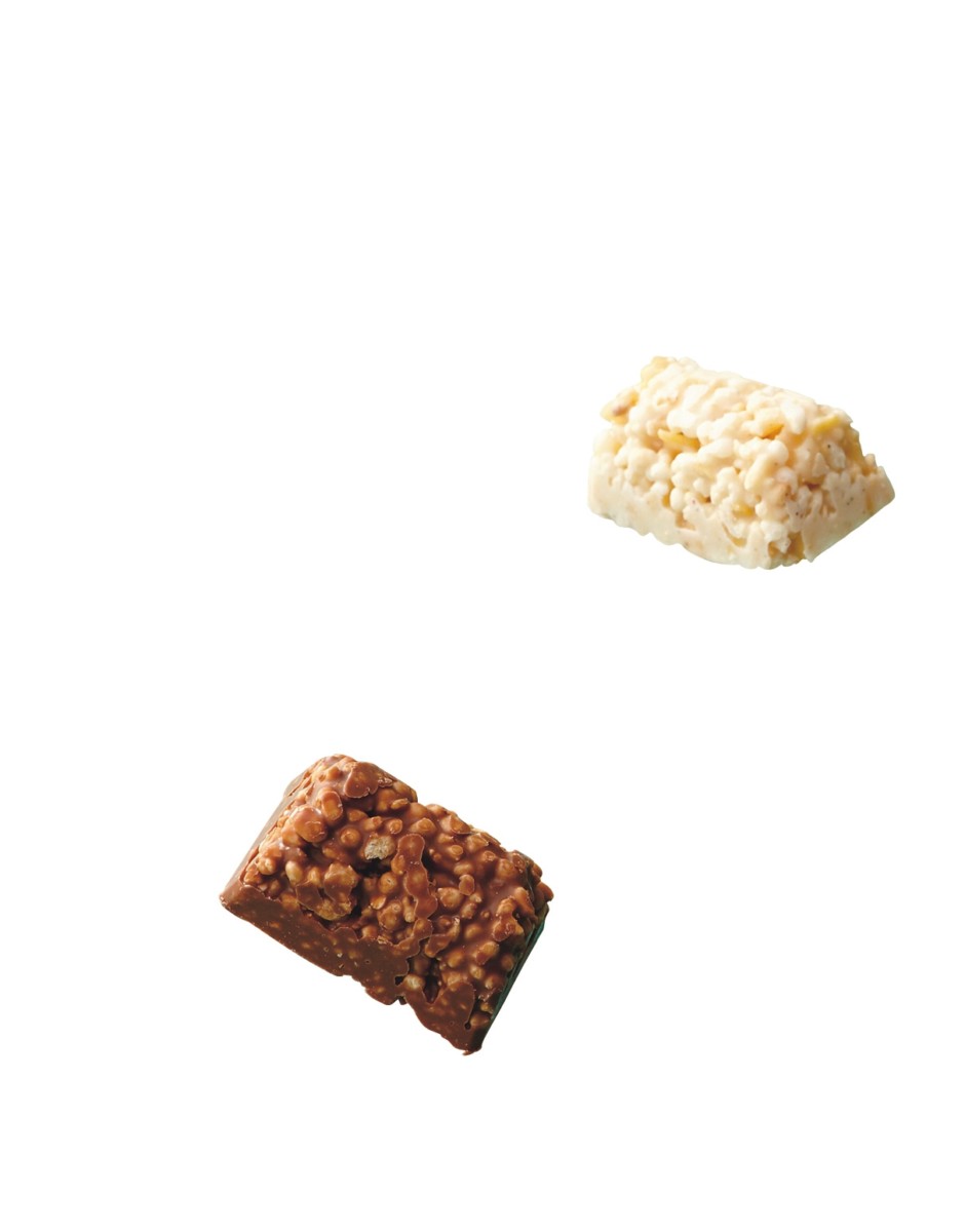 チョコレートとホワイトチョコレート味のパフクランチ、