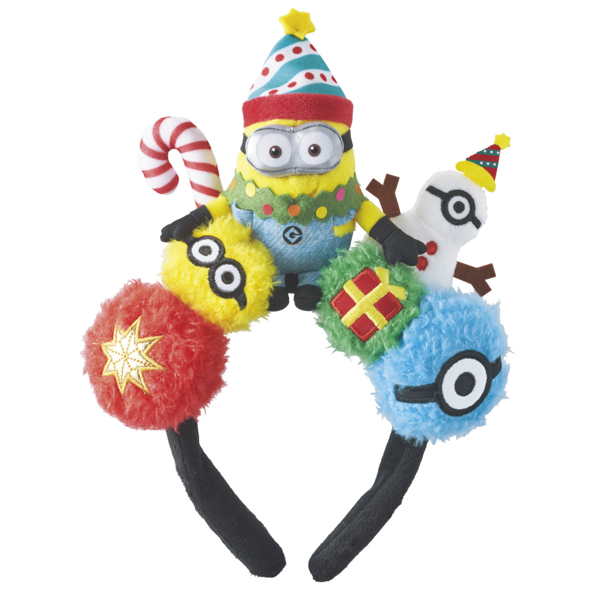 楽しくてキュートなミニオンのクリスマスオーナメントをにぎやかに並べたカチューシャ。