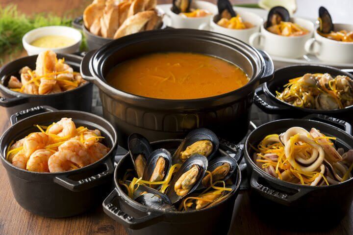 2種類の食べ方で楽しめる自慢の「国産牛サーロインのローストビーフ」や鉄板での実演メニューはもちろん、新登場の生パスタの実演や、人気のブイヤベースが好評により復活します。