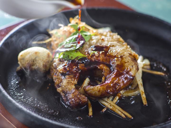 熱々の鉄板で焼きあげたふかひれステーキは「サックリ」した味わい。