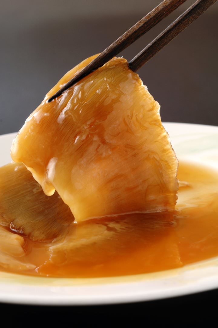 優雅な三日月フォルムはそのままに、ツルリとなめらかな弾力性とゼラチン質が楽しめ、醤油とオイスターソースの味わい深いとろとろ餡が食欲をそそります。