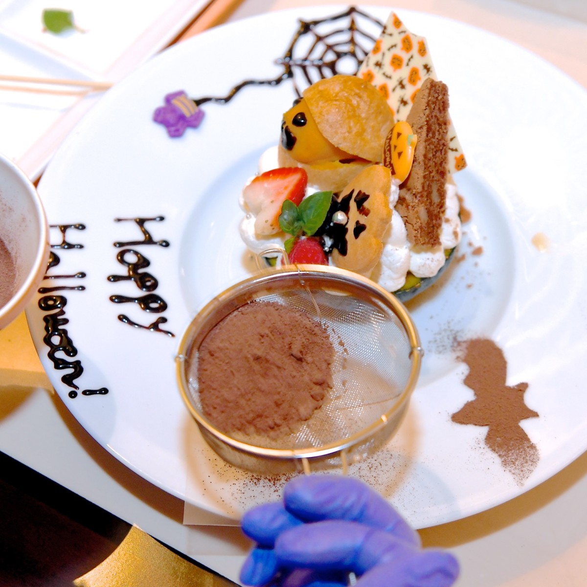 ステンシルでココアパウダーを飾り付け。