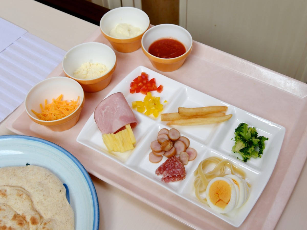 チーズをトッピングし、自分だけのかわいいピザデコレーションが完成です☆