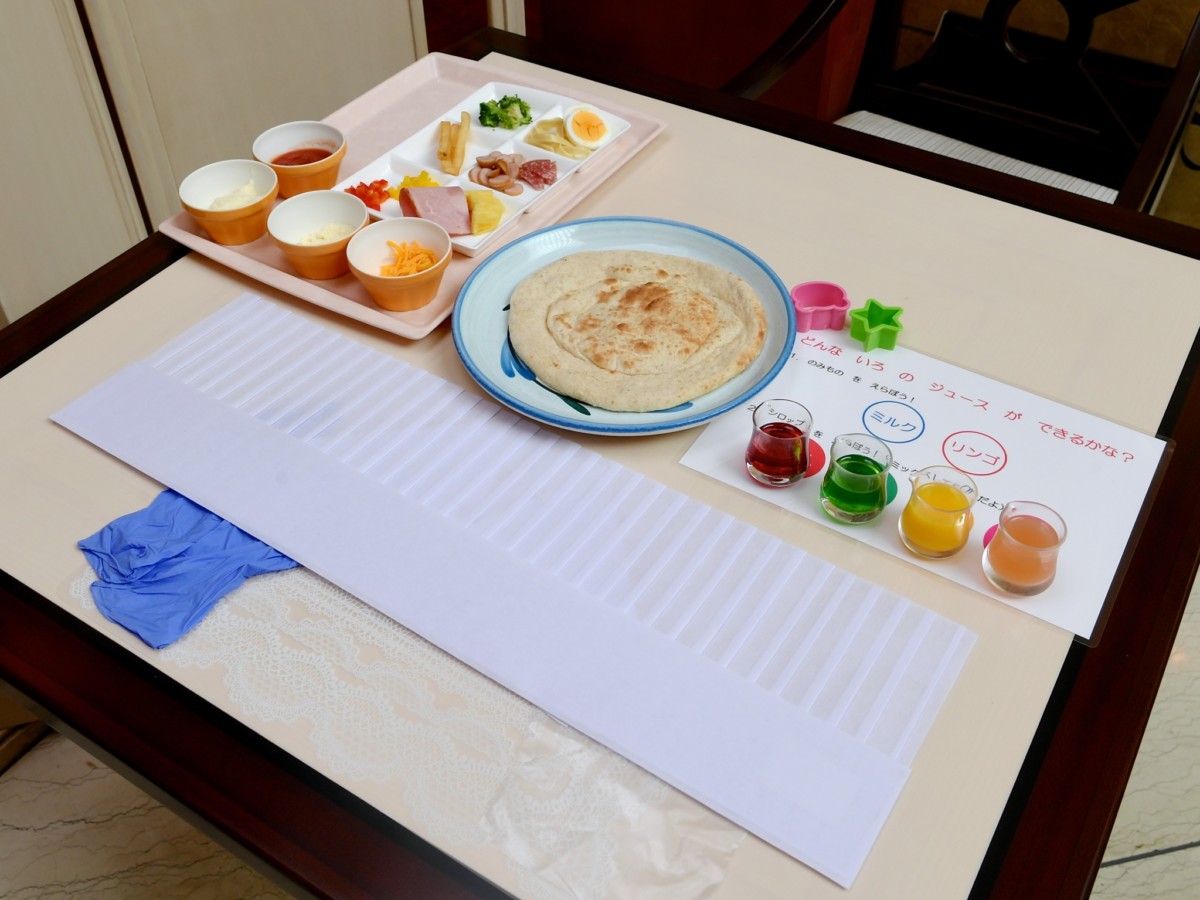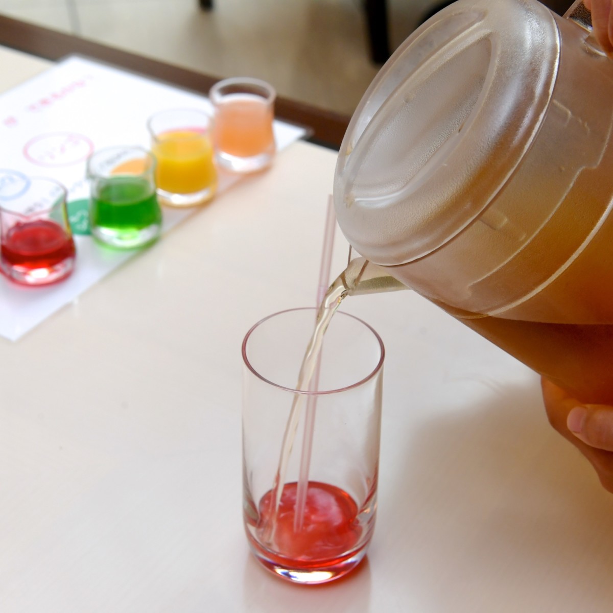 ピザを焼き上げたら、テーブルに戻り、ドリンクいろあそびを体験。