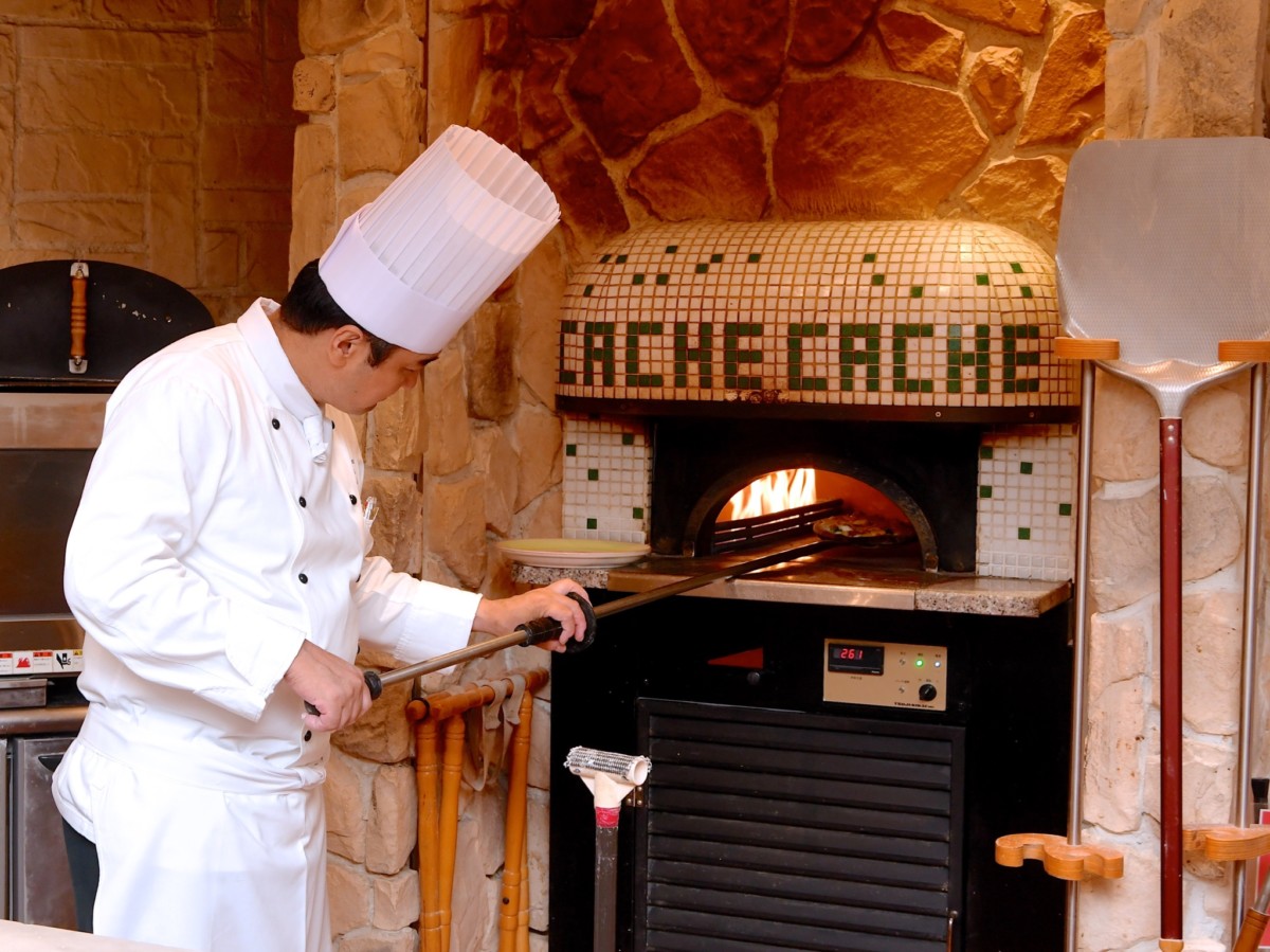 デコレーションが終わったら「カシュカシュ」自慢のピザ窯へ。