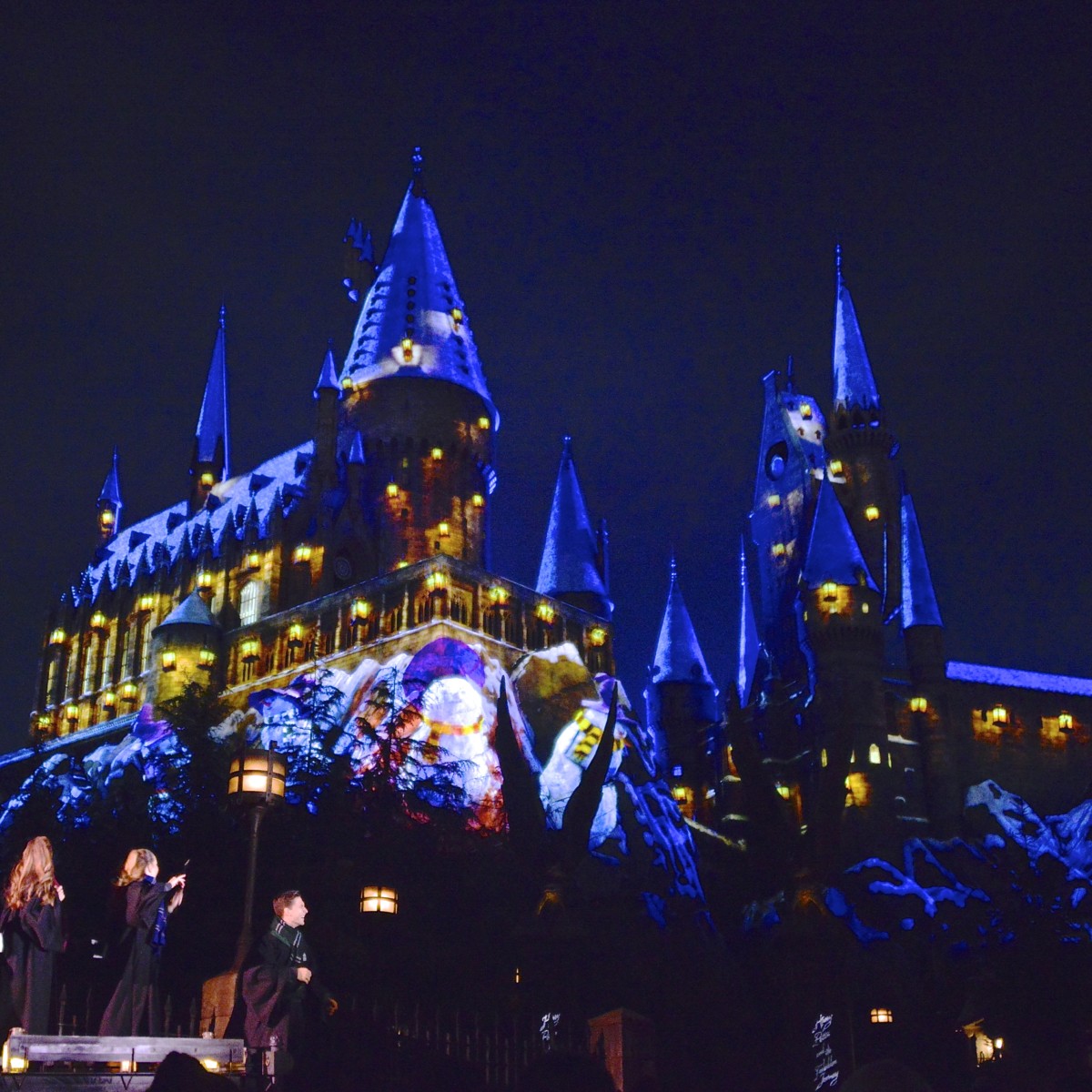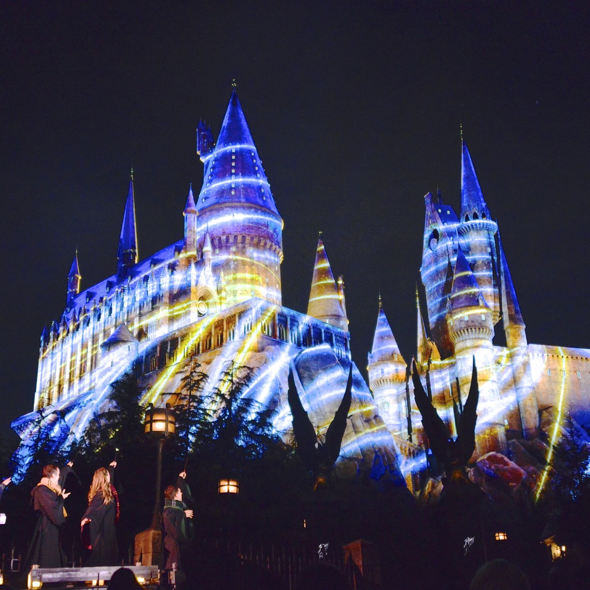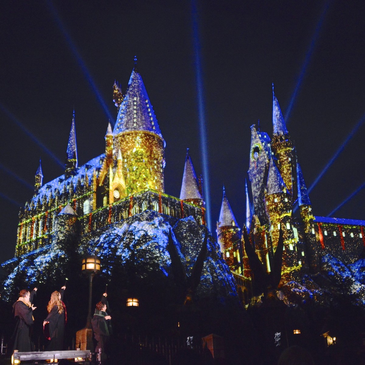 フィナーレでは、生徒たちの唱えた光の魔法「ルーモス・マキシマ」の呪文で、ホグワーツ城がまばゆい輝きを放ちます。