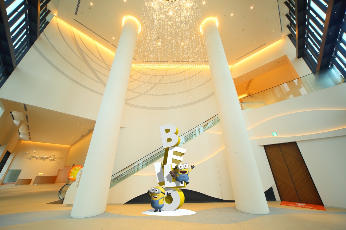館内エントランスの正面には、パークの人気者「ミニオン」のモニュメントが。