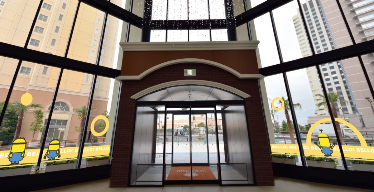 また、エントランスのガラスウインドーでも、「ミニオン」たちに出会うことができます。