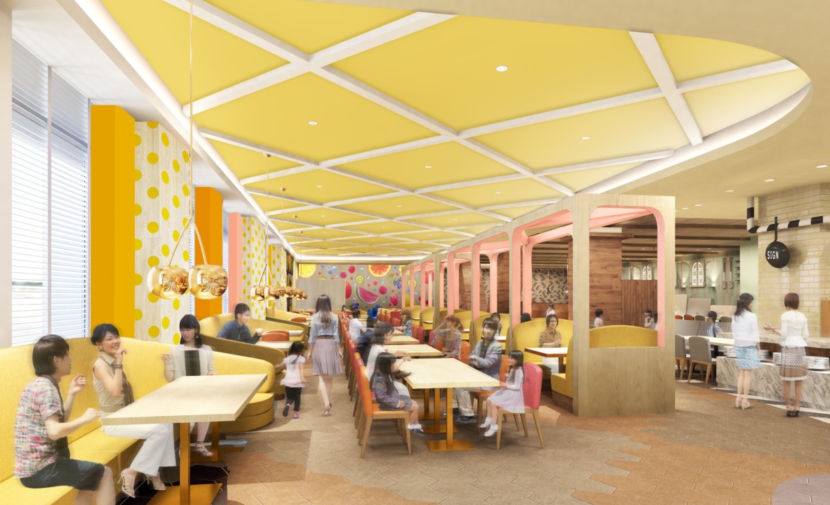 ベージュやグリーンカラーを取り入れた落ち着いたエリアでお友だちや家族と楽しいひと時が過ごせます。