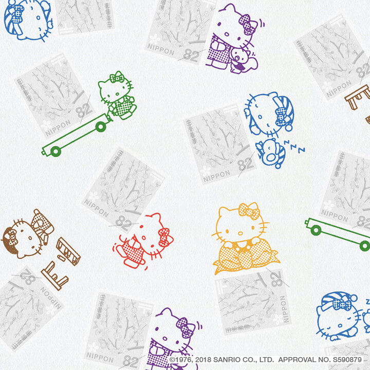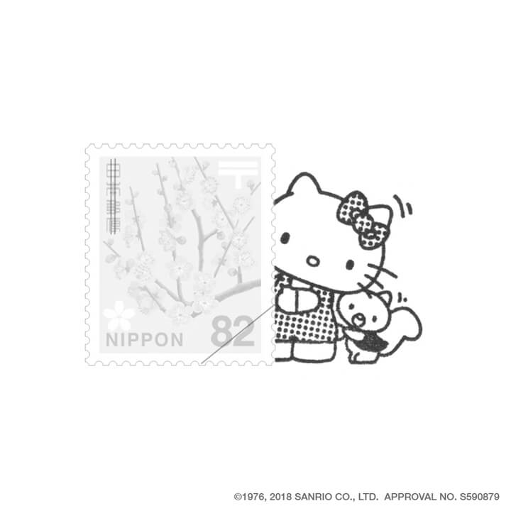 切手の下に押すことで、切手を台車に乗せてキティが運んでくれているようにデザインできます☆