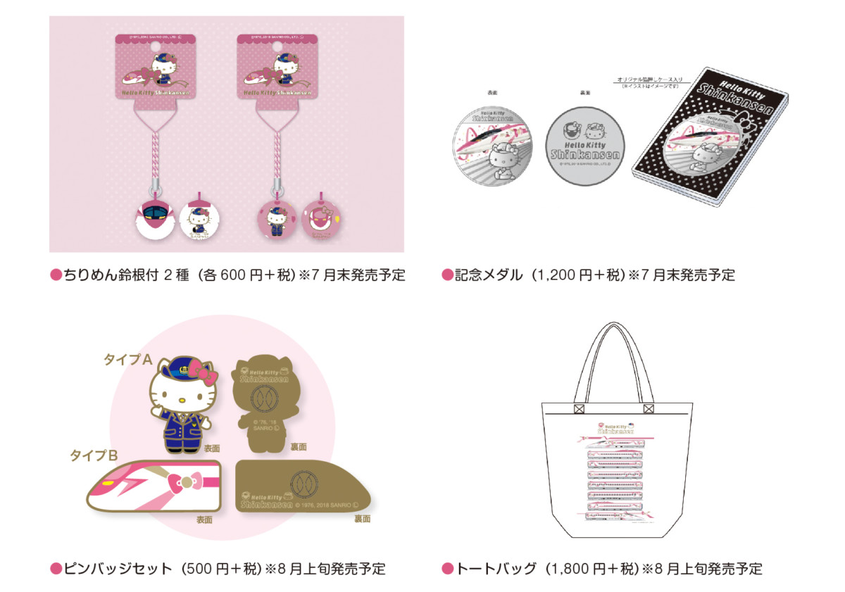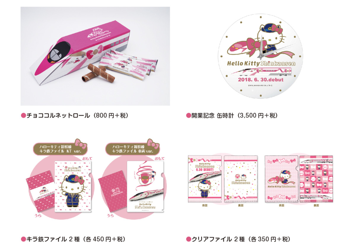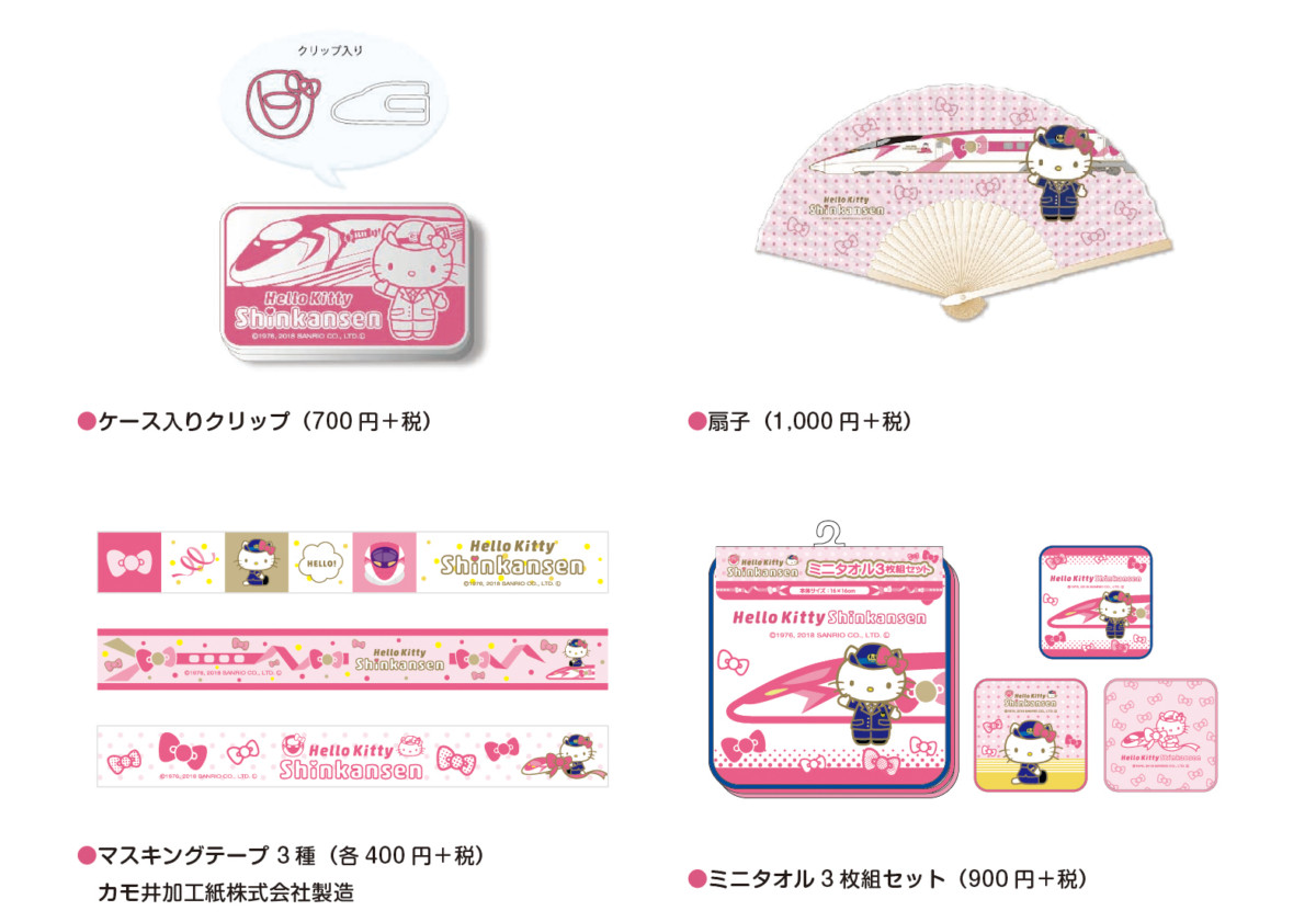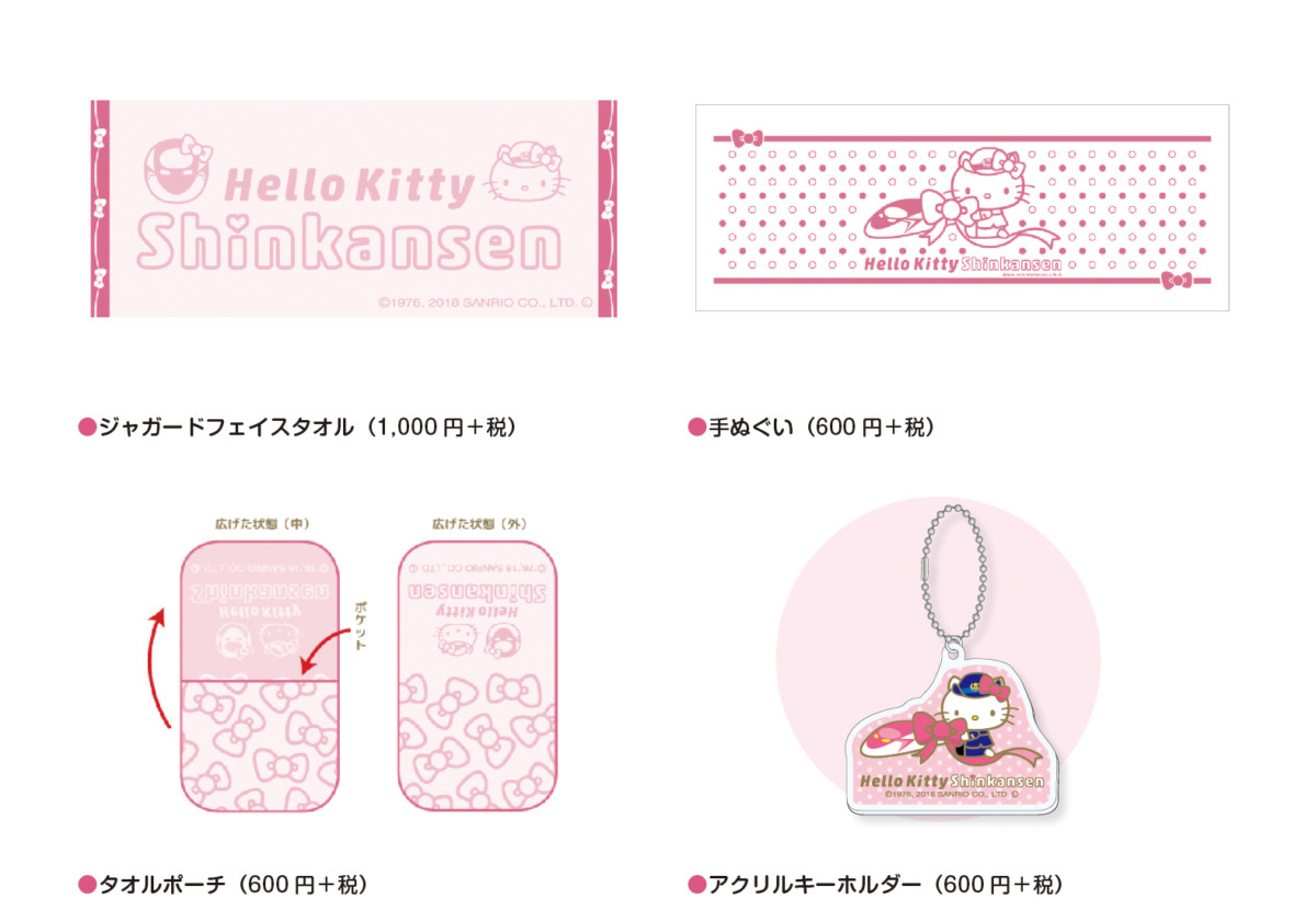 「ハローキティ新幹線」をモチーフにしたキュートなオリジナルグッズ。