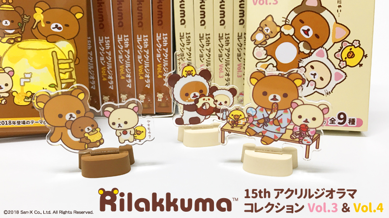 「リラックマ 15th アクリルジオラマコレクション」のVol.3とVol.4が、ローソン限定で好評発売中!