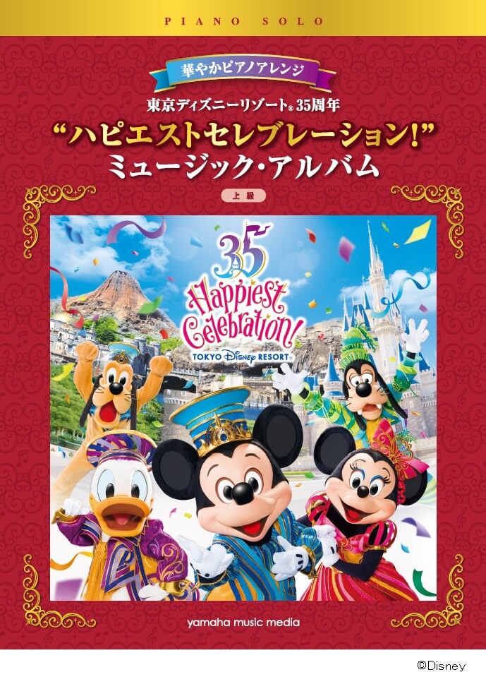 ヤマハミュージックエンタテインメントホールディングスより、2018年4月に発売されたCDアルバム『東京ディズニーリゾート®35周年”ハピエストセレブレーション!”ミュージックアルバム』<デラックス>、<通常版>に収録されている楽曲を収載したピアノ楽譜集が登場!