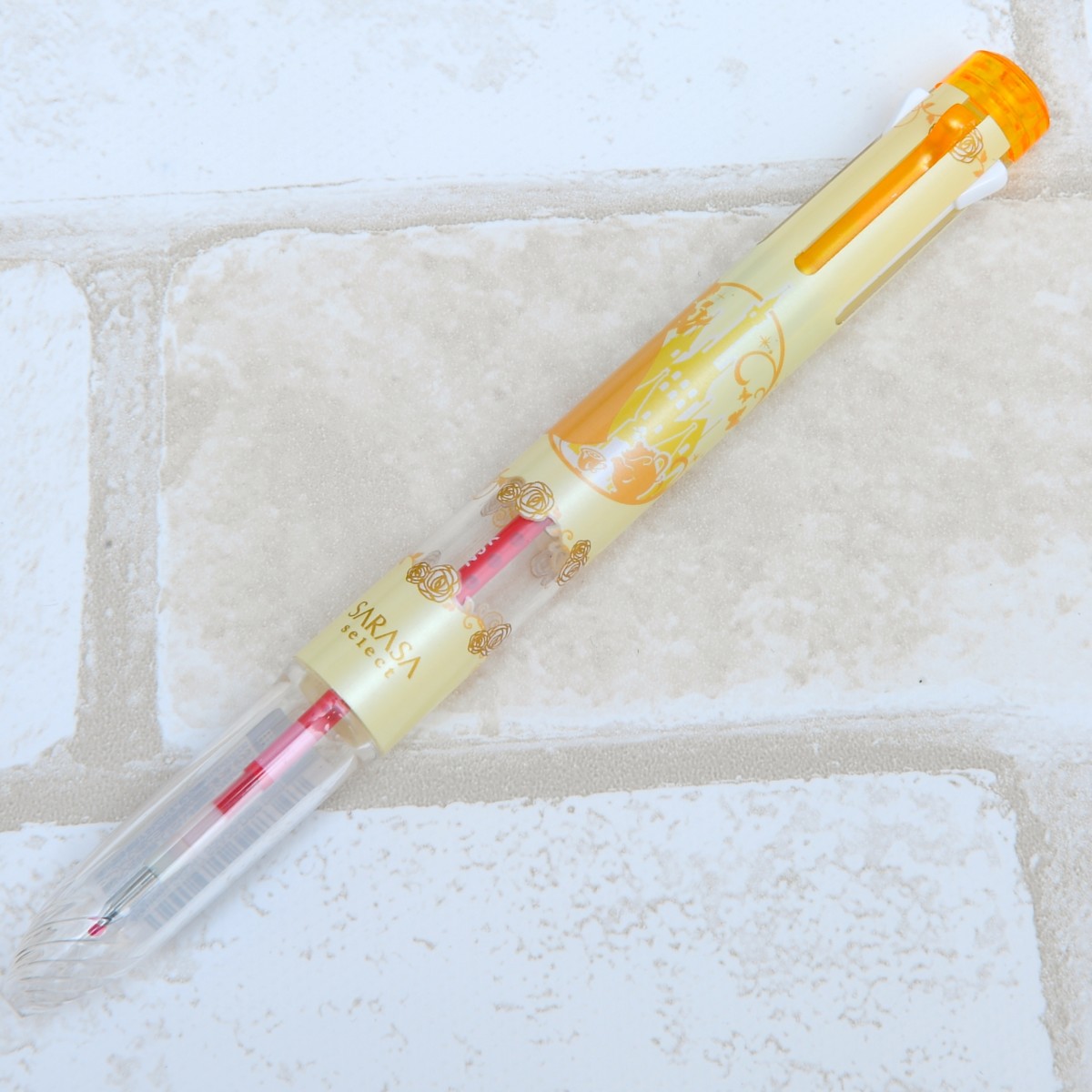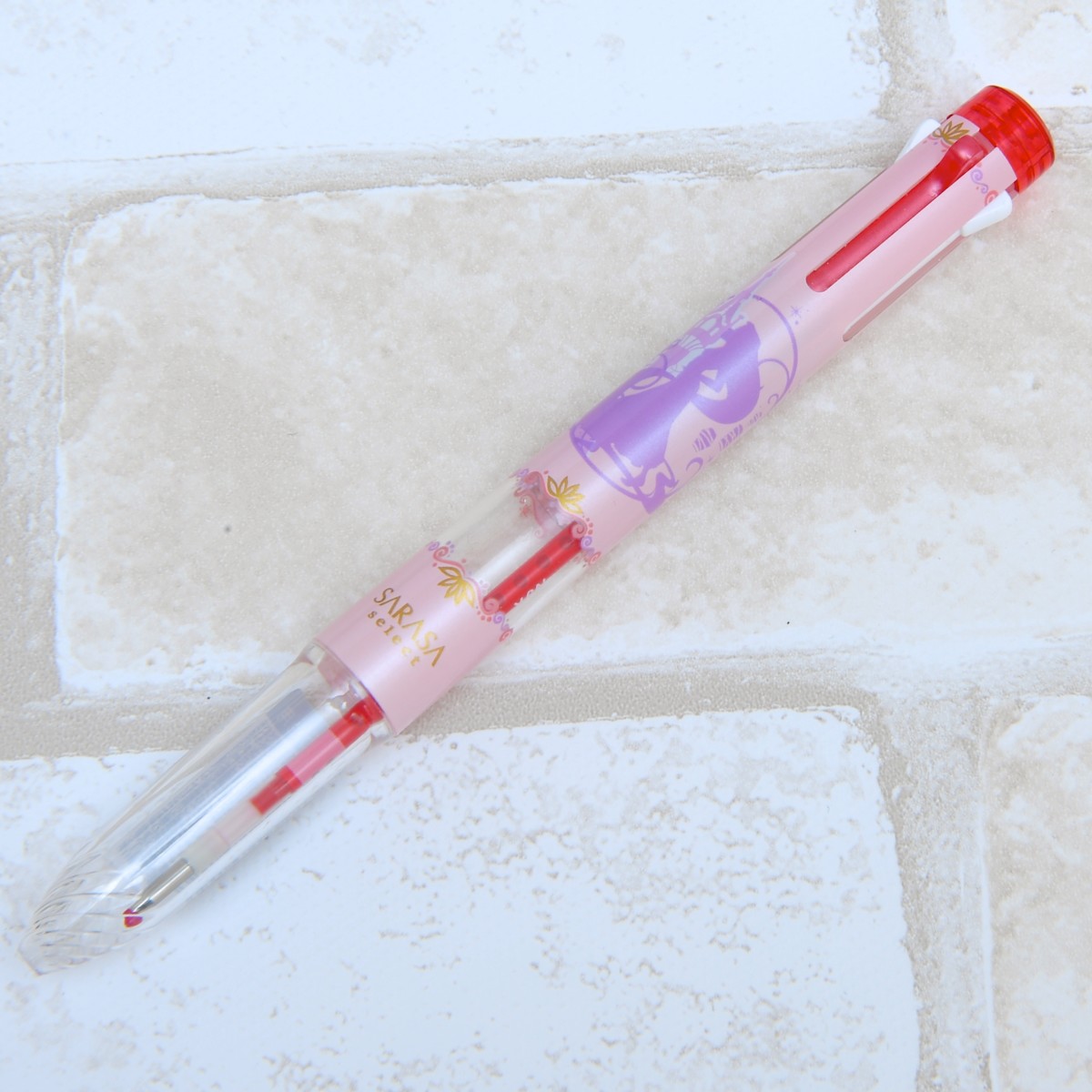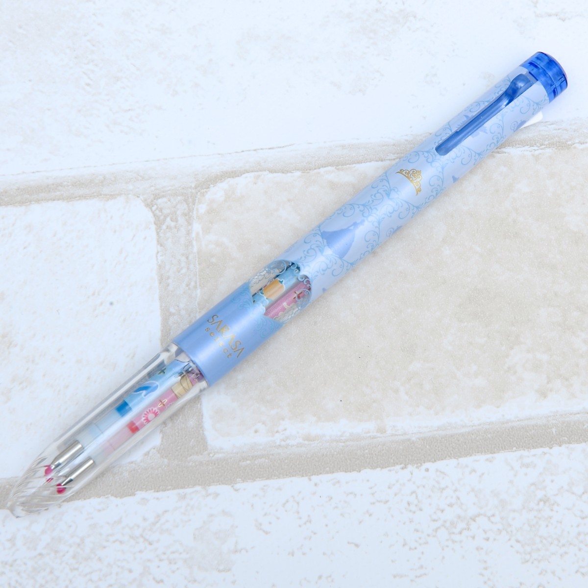 「サラサセレクト」などの対象のペンのクリア窓からさりげなくのぞくプリンセス柄がとってもキュート♪