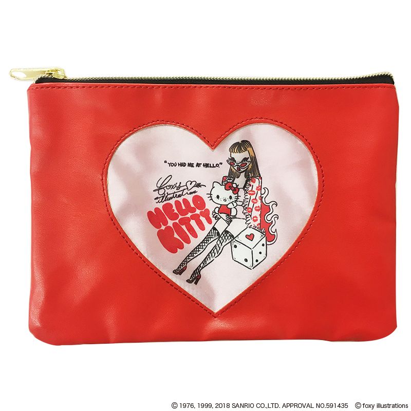 大きなハートにコラボアートがデザインされたフラットポーチ。